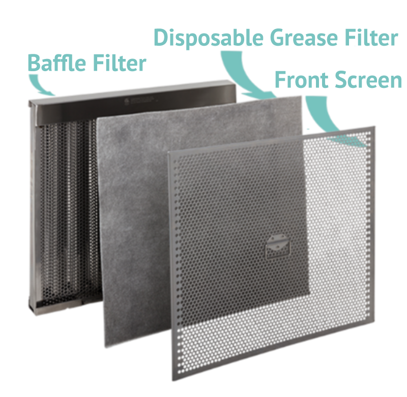 Reduces hood cleaning frequency by 75%, and minimizes the need to clean baffle filters regularly
